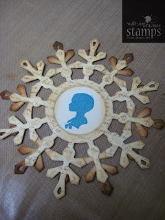 I used that fabby crackle glaze from ranger to get the cracked texture over the image. In all, I trimmed out the large snowflake 3 times, two of them face front and the last one faces back, I didn't want the back of my ornament to be unfinished and so it's just the same on both sides.