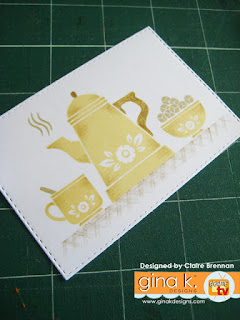 I used the Coffee Set stamps, just released at Gina K's for this one. Huge mileage in this set, many, many sentiments for lots of different occasions.