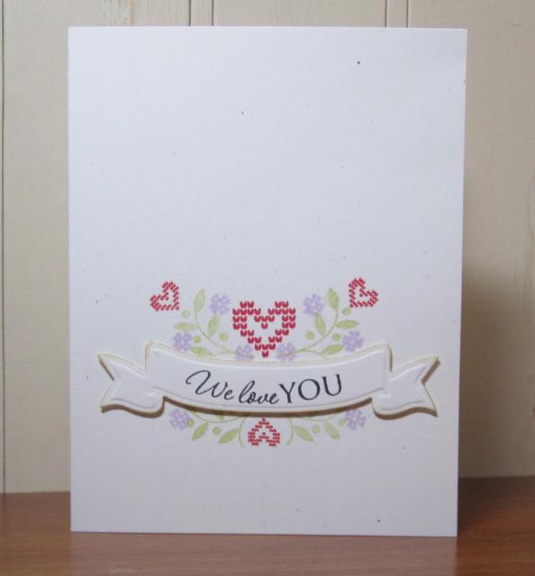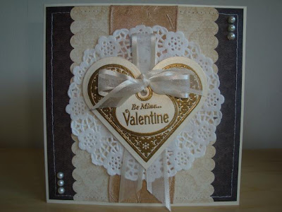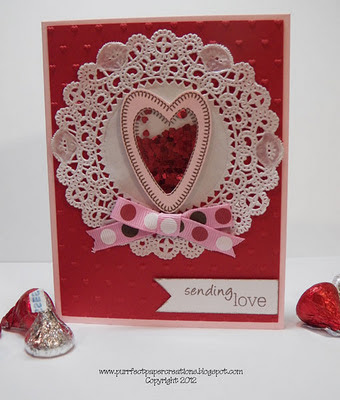 For the second ornament I simply trimmed the heart as before and then added some dots around the edge as before and stamped an unlinked sentiment and a scroll (Seasons of love tags) into the centre.