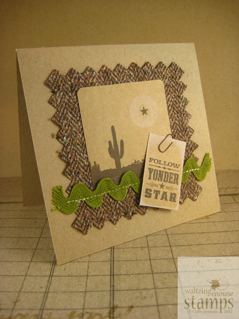 I made a little rustic ornament using some of the cut files that will go with the Yonder star set, it's an oldie but goodie idea, simply because it's so fast! if you have an electronic cutter that is...I love the texture that the saw tooth edging gives, but if you were cutting this by hand, I'd go for straight lines to keep it fast.