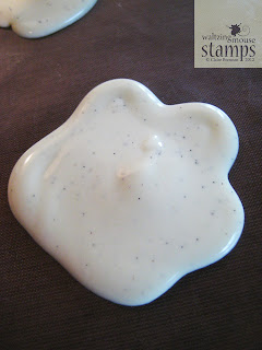 During the recent Blog Party I saw Tara’s card and really liked the way she used the Folk Art frame - so I CASE’d (Copy and Share Everything) it. I stamped the frame in Versamark, and heat embossed it with white embossing powder, cut it out and then painted it with Twinkling H20s. In real-life it has a lovely shimmer.
