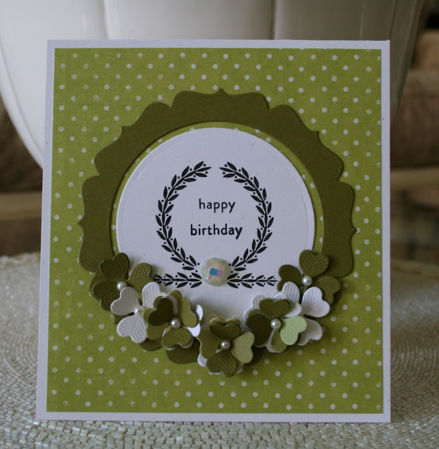 For the inside I cut a panel of green paper and white cardstock, stamping a bold sentiment and a couple of medallions.