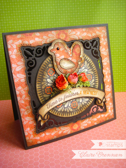 A few of you may know that I'm packing up and moving. Lynn caught me in the knick of time to create something. For Waltzingmouse, my fav stamp company? Any day! I may have been willing to unpack all my moving boxes just to do this ;) Just sayin'.