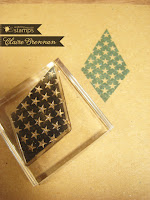I cut my cardstock and used my Scor-Pal to score diagonal lines and then stamped the tiny cupcake from the Frame-It Stamp set in each space. The diagonal scoring made it very easy to keep my stamping even and uniform.