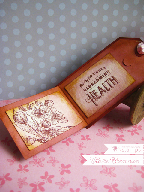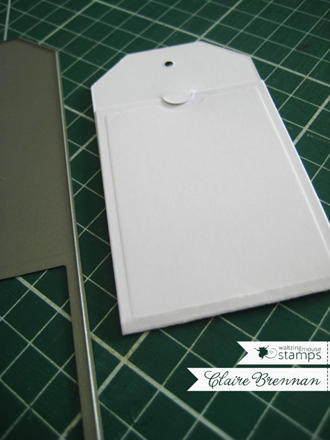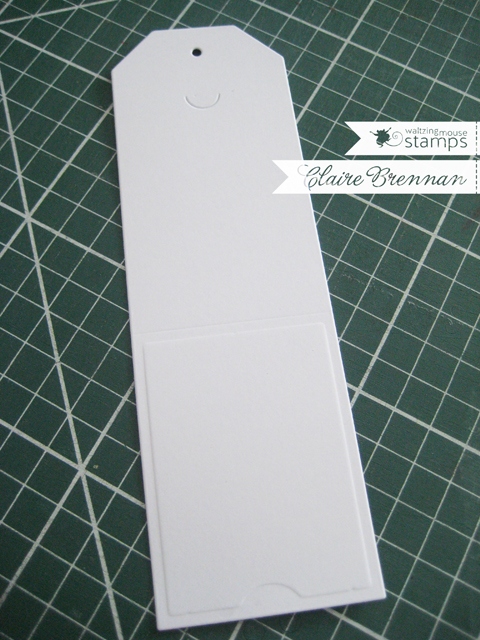That is the basic folding tag and it is just the perfect size for adding to the front of a card, for putting on a scrap page as a journaling tag, or for attaching to a gift, endless possibilities! Simply add a grommet/reinforcer of your choice and go to town with your stamping!