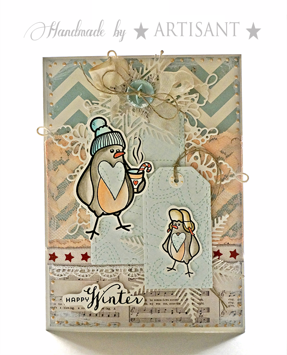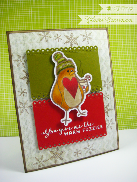 Warm Fuzzies' and it is the final set in our trio of cute Christmas themed sets releasing tomorrow! it features a chap that my wee folks are calling Sassy Robin. I must admit, now that I look at him he does have a certain attitude... He has his little hot cocoa in hand, complete with peppermint candy cane and he is ready for winter. I think he might possibly be my fave of the 3 characters so far...beady eye factor....