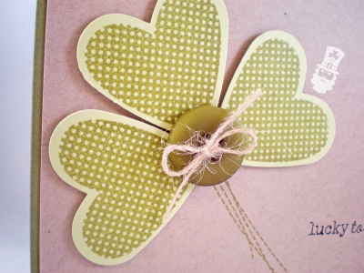 Here is the little mask I made to stamp the shamrock motif for my card, you can see I'd already stamped it once before i remembered to take a pic, just line the mask up over the prestamped outline and fill with any pattern from a solid stamp!