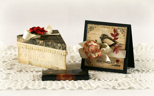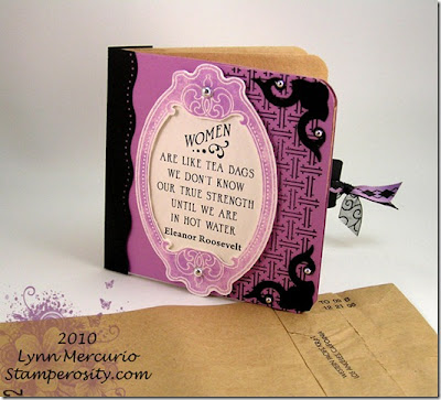 I had embossed the tag with a lovely Tim Holtz embossing folder, the name of which escapes me, and the back panel is embossed with a chevron embossing folder from Spellbinders. A couple of miniature dried rose buds and I was done! I hope you like it!