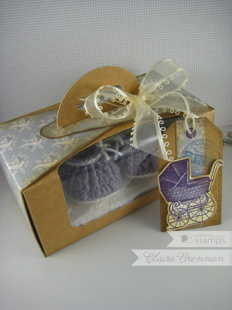 I made up a matching card to present along with my blocks. Simple assembly, stamping and colouring, and what a neat set you will have to present to your next mum-to-be.