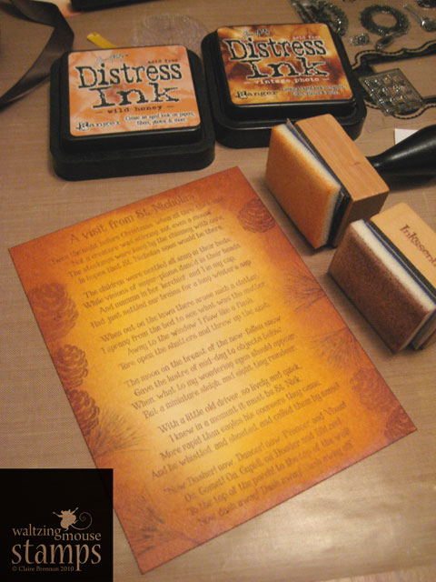 Do you notice the background? It contains an image of the actual poem, the first six verses to be exact. It is such a long poem that It would have been impractical to use it all, but I think the first six verses are possibly the most well known, and i think it's plenty to use for a background stamp.